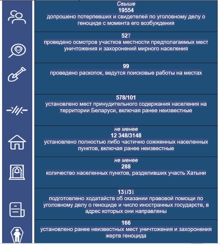 - Информация о ходе и результатах расследования уголовного дела по факту геноцида населения БССР в годы Великой Отечественной войны и послевоенный период (по состоянию на 21.03.2025)